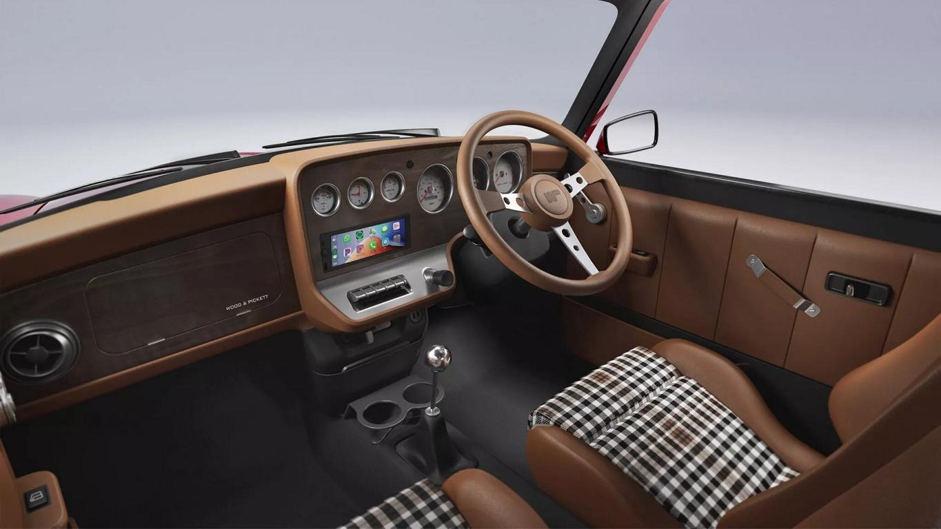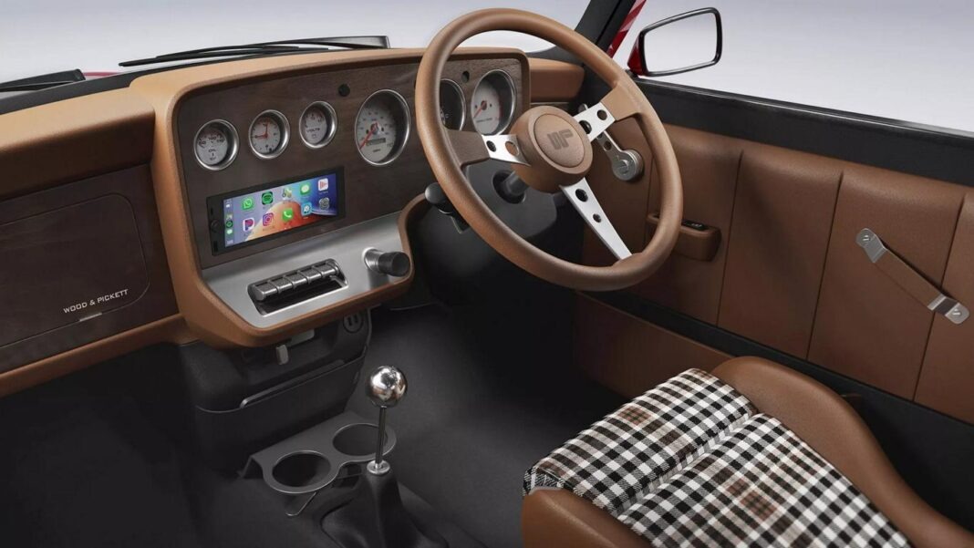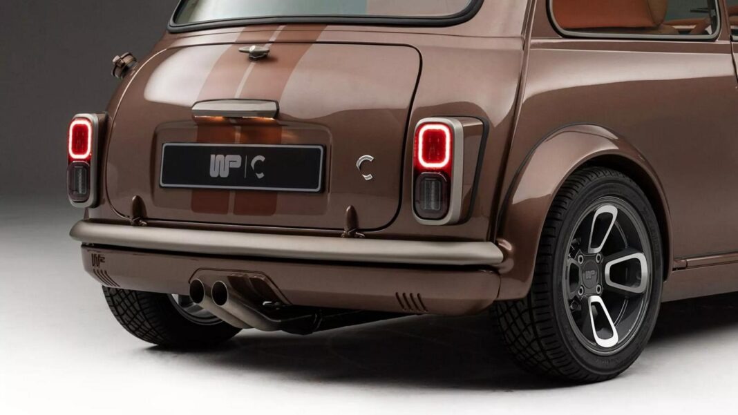 이번 레스토모드의 기반은 Mini MK5 Sports Pack 차체. 이는 클래식 미니 라인업의 마지막 진화형으로, 그 자체만으로도 상징성이 높다. 외형은 원형을 존중하면서도 세련된 디테일 업그레이드가 이루어졌다. 프론트와 리어 범퍼는 새롭게 다듬어졌고, Wood & Pickett 전용 오버펜더, 13인치 전용 알로이 휠, LED 헤드램프 및 테일램프가 조화를 이룬다. 여기에 앤트러사이트 메탈릭 도장이 고급스러움을 더한다.