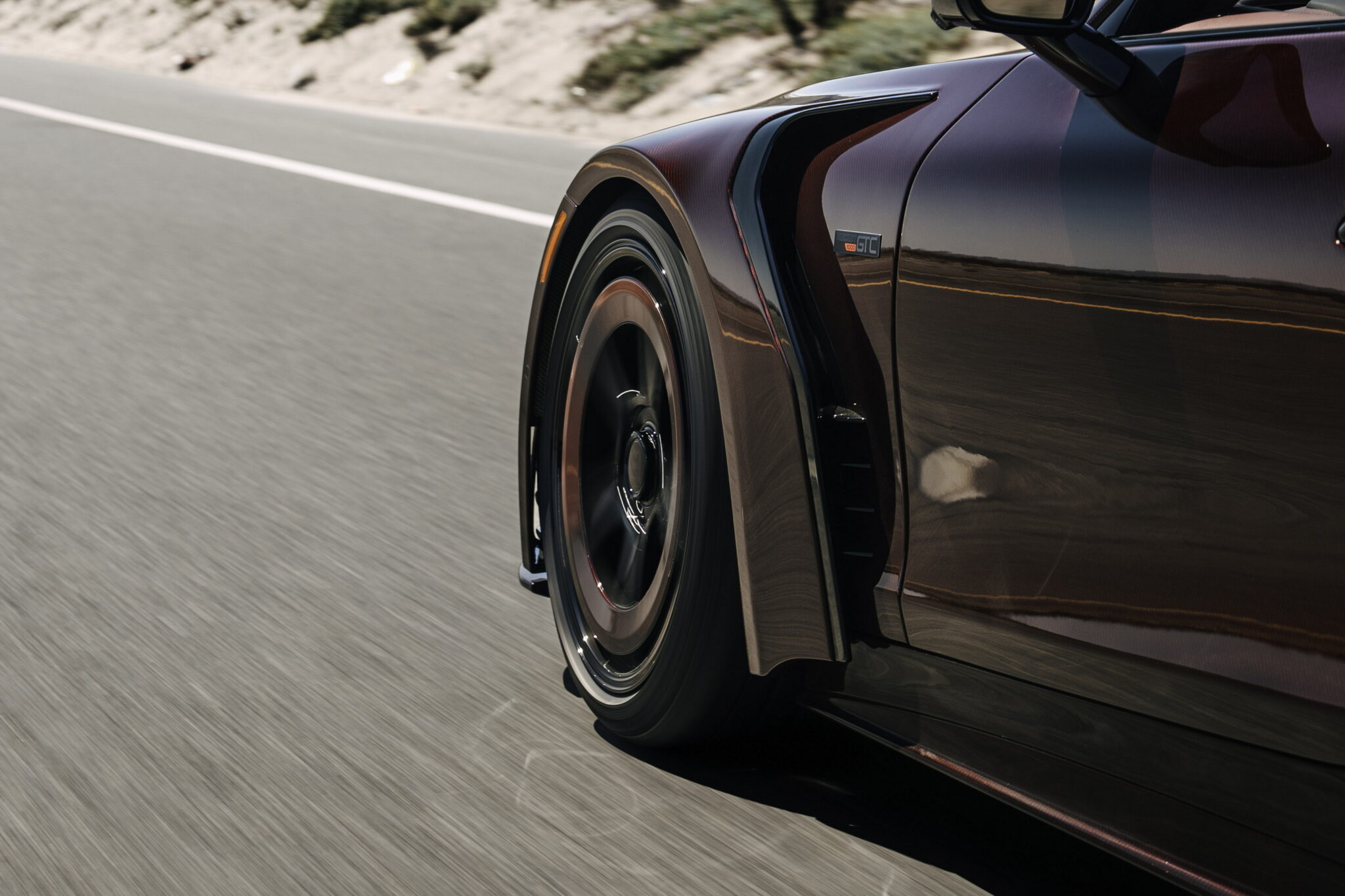 로켓 GTC 딥 레드의 차체는 전면 탄소섬유로 제작됐으며, 투명 레드 코팅을 통해 강렬한 시각적 효과를 강조했다. 공기역학적 설계와 21·22인치 대구경 휠, 335mm 폭의 후륜 타이어를 수용하기 위해 차체 폭도 크게 늘었다. 후면에는 풀-와이드 덕테일 스포일러와 레드 조명 효과가 더해진 4개의 티타늄 머플러가 자리한다.
