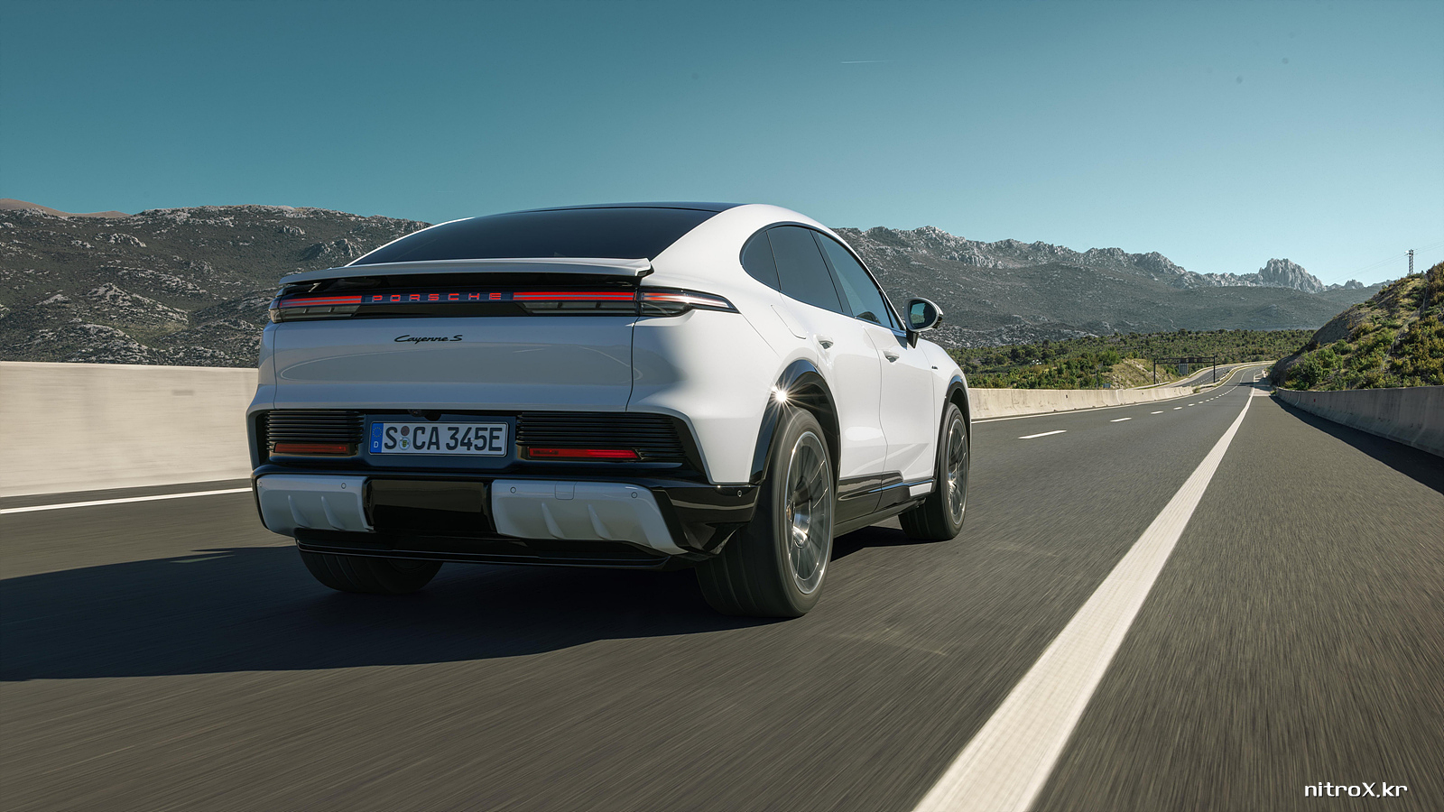 디자인의 핵심은 911에서 따온 루프라인이다. 포르쉐 내부에서 ‘플라이라인(flyline)’으로 부르는 이 완만한 곡선이 A필러 뒤부터 차체 후미까지 이어지며 SUV와 확연히 다른 실루엣을 만든다. 쿠페 전용으로 설계한 윈드스크린, 차체와 일체감을 높인 어댑티브 리어 스포일러, 고광택 블랙 사이드 윈도우 스트립이 이 인상을 강화한다.