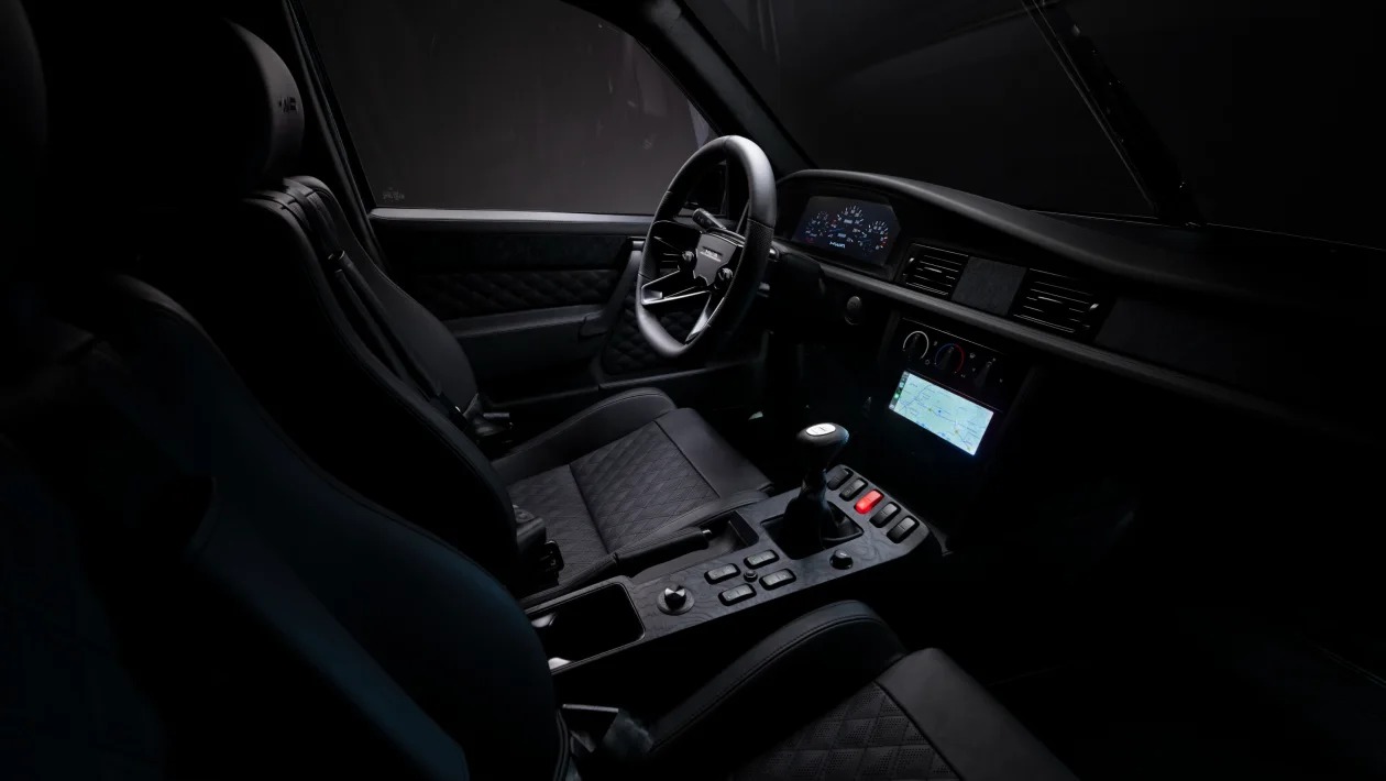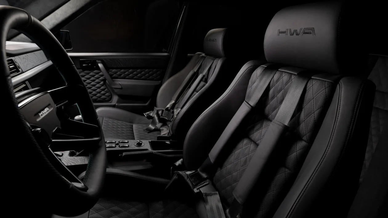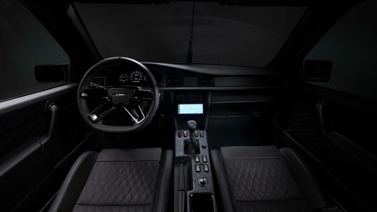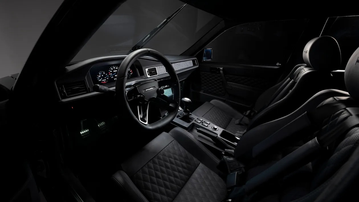 실내는 190E 특유의 4스포크 스티어링 휠과 대시보드 레이아웃을 현대적으로 재해석하면서, 다이아몬드 퀼팅 가죽 시트와 풀 롤케이지(알칸타라 마감), 디지털 계기판과 스마트폰 미러링 인포테인먼트 시스템을 갖췄다. 레트로 무드를 유지하되 실용성과 안전성은 현대 기준에 맞춘 조합이다.