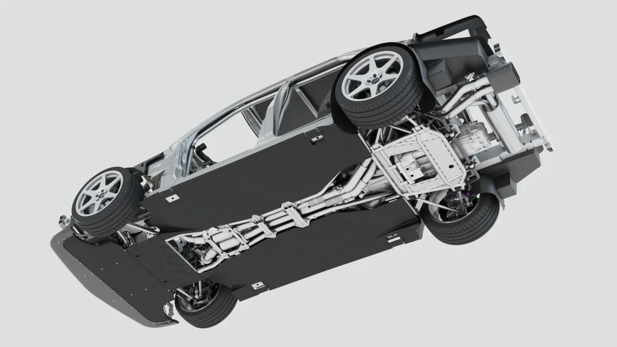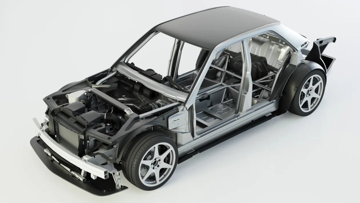 외관은 원작의 과장된 휀다와 공격적인 리어 스포일러를 충실히 재현하지만 내부는 전면 재설계됐다. 기존 190E의 스틸 모노코크를 기반으로 전·후방은 전용 알루미늄 구조물로 교체해 경량화와 안전성을 동시에 챙겼다. 이 구조 덕분에 전방 서브프레임에 더블 위시본 서스펜션을 맞춤 설계할 수 있었고, 메르세데스 S클래스에서 가져온 3.0리터 트윈터보 V6 엔진을 최대한 뒤쪽으로 밀어 넣는 것도 가능해졌다. 드라이 섬프 방식을 채택해 무게중심도 낮췄다. 기본 사양 출력은 444마력, 선택 사양인 아팔터바흐 패키지를 더하면 493마력까지 오른다.